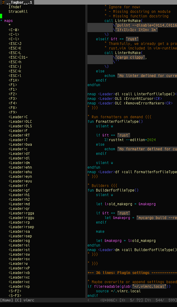 Ooooooooooh! If your .vimrc is as messy as mine, you’ll be pleased to learn that Tagbar can show a sorted list of all key mappings: